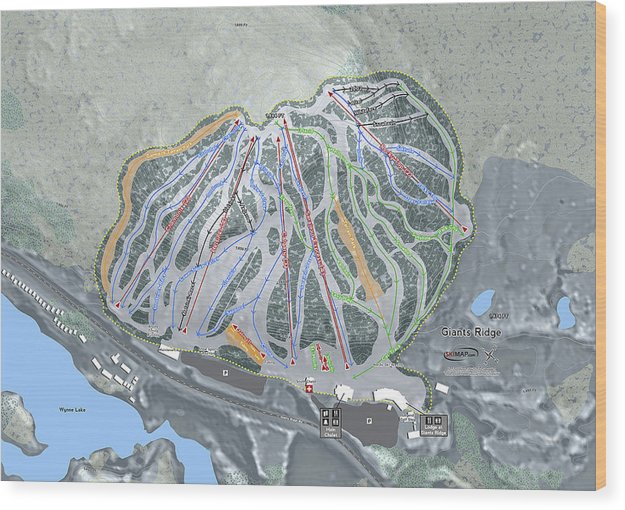Giants Ridge Ski Resort Map wood print by Powder Addicts.   Bring your artwork to life with the texture and added depth of a wood print. Your image gets printed directly onto a sheet of 3/4" thick maple wood. There are D-clips on the back of the print for mounting it to your wall using mounting hooks and nails (included).