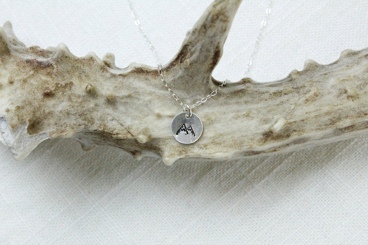 Hand crafted Stamped Mountain Circle Pendant Necklace. Available in sterling silver or gold fill. This delicate stamped necklace is the perfect everyday piece!