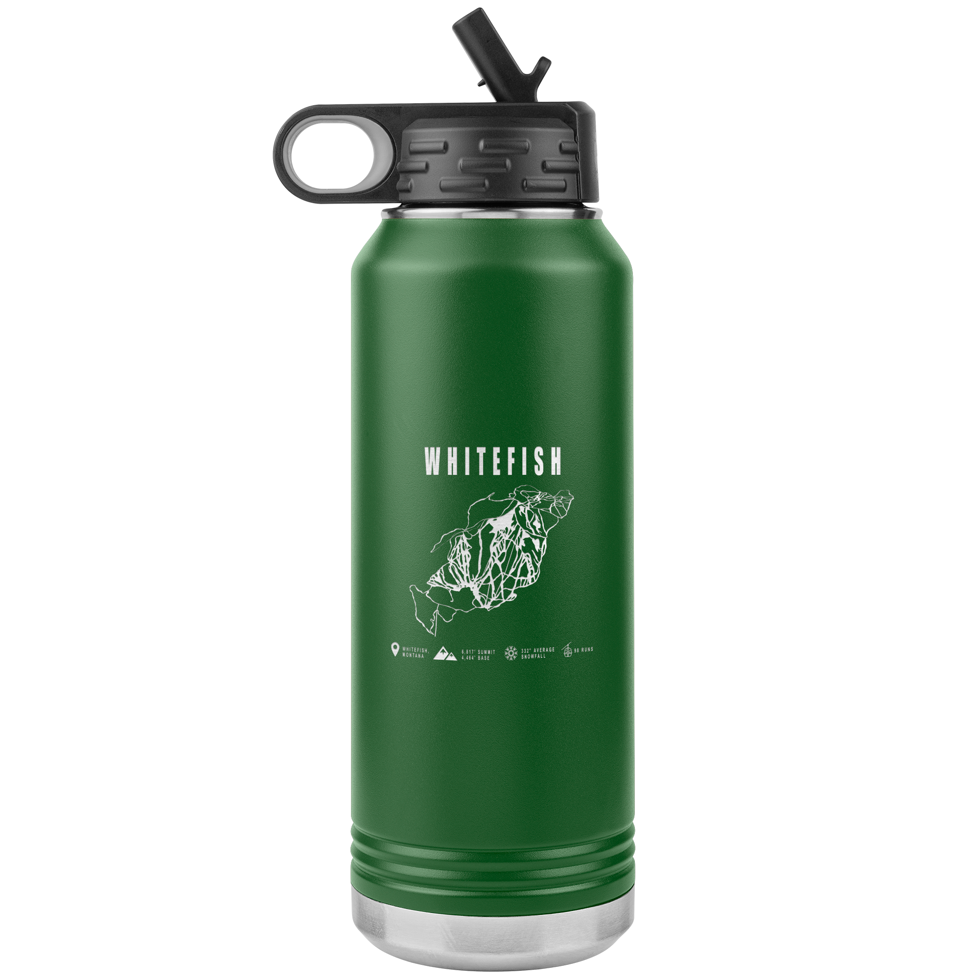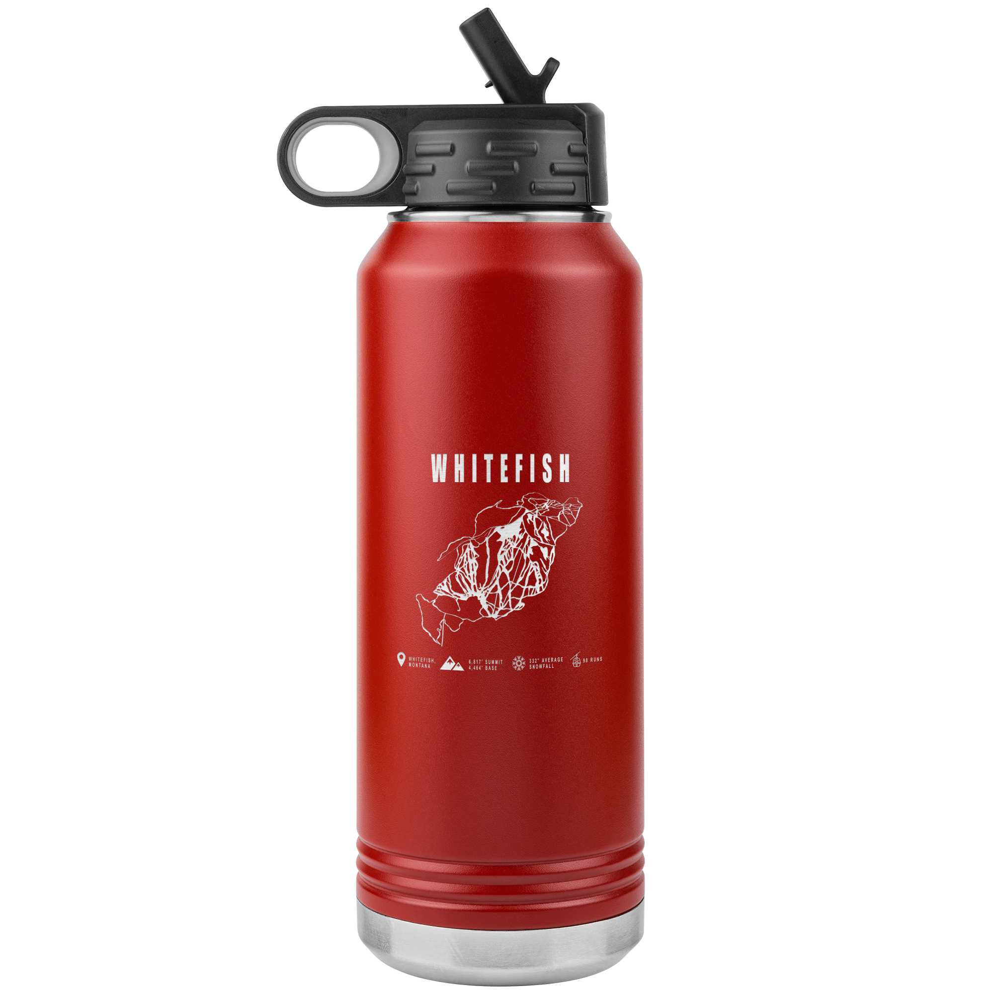• Whitefish Montana Ski Trail Map 32oz Water Bottle Tumbler